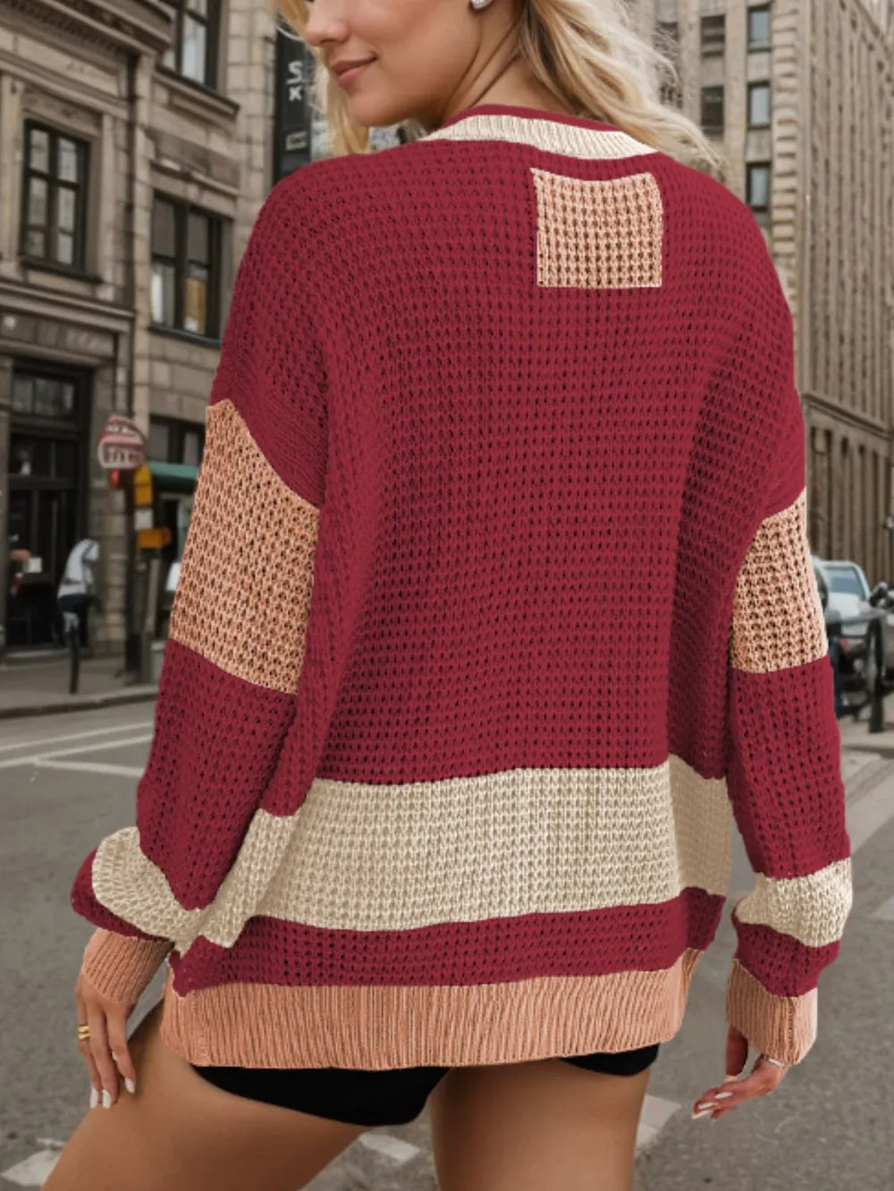 Contrast Button Up Long Sleeve Cardigan