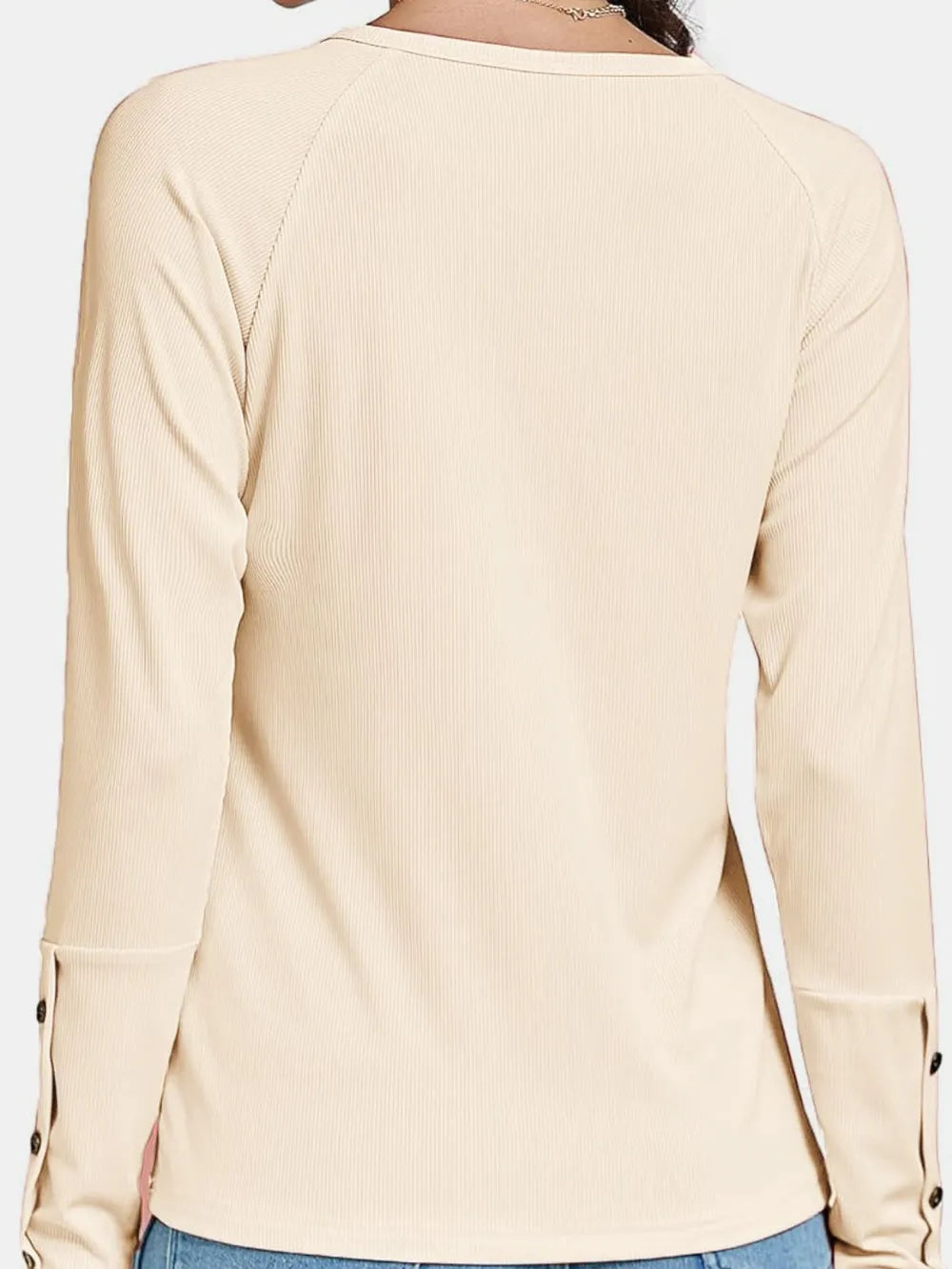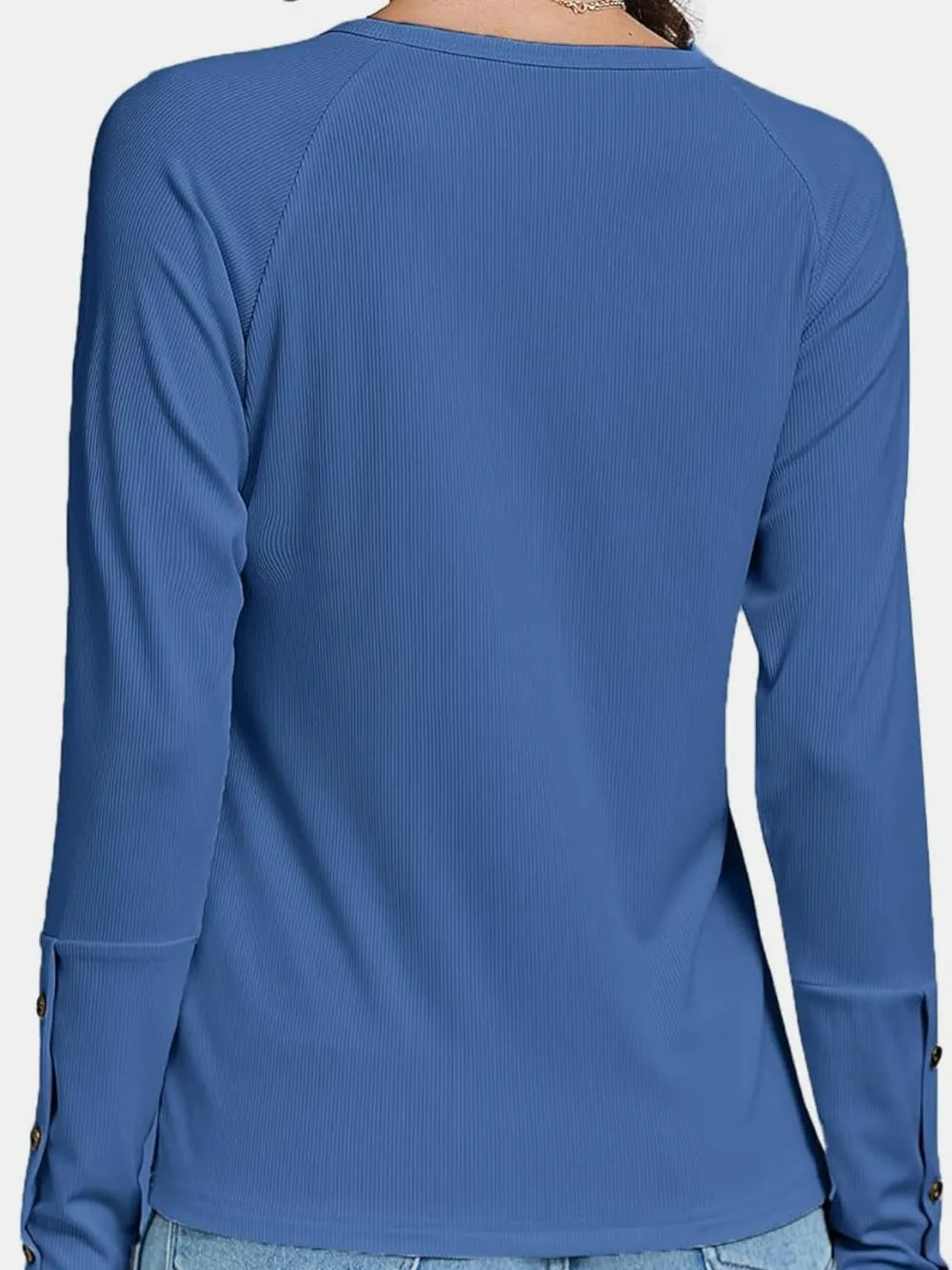 Decorative Button V-Neck Long Sleeve T-Shirt