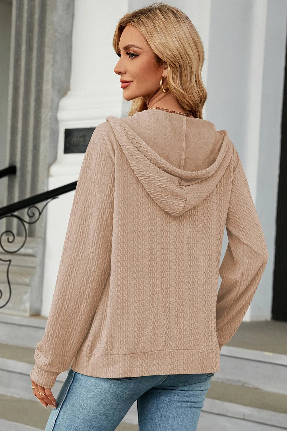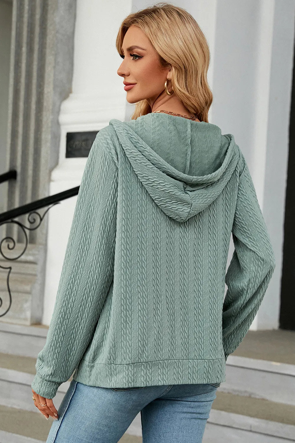 Drawstring Zip Up Long Sleeve Hoodie