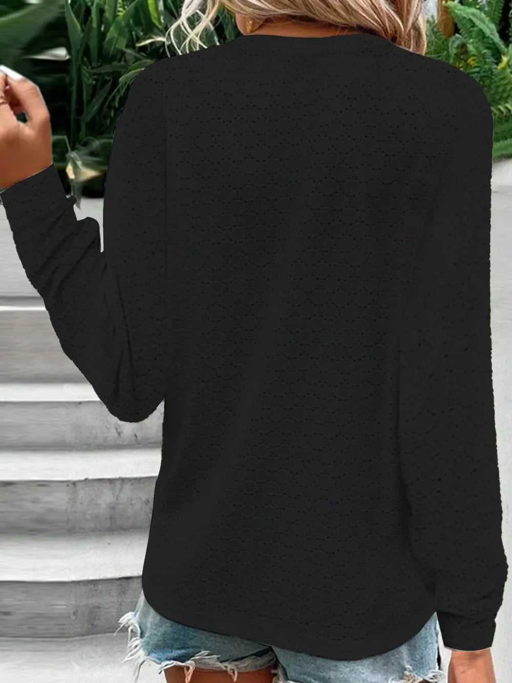 Eyelet Notched Long Sleeve T-Shirt