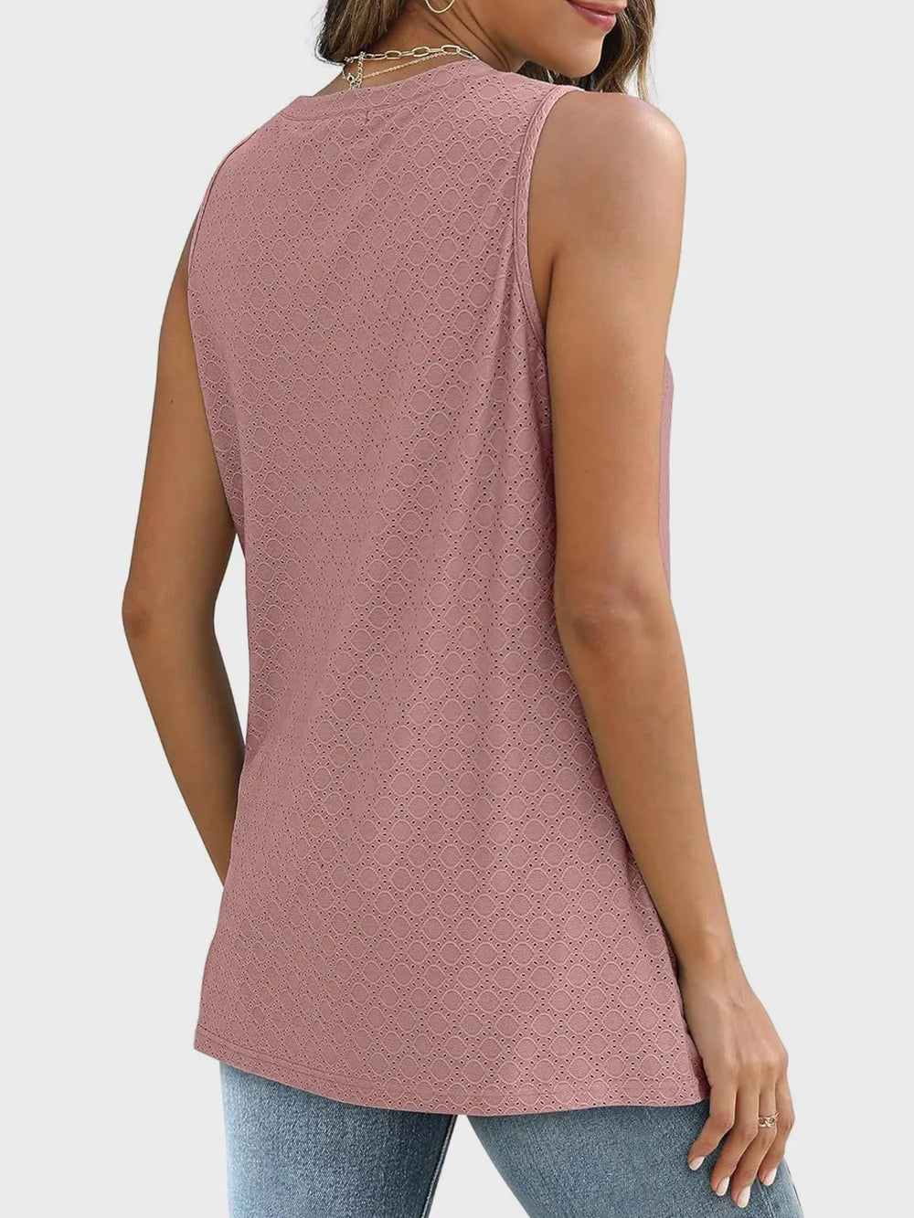 Florira Eyelet Round Neck Tank