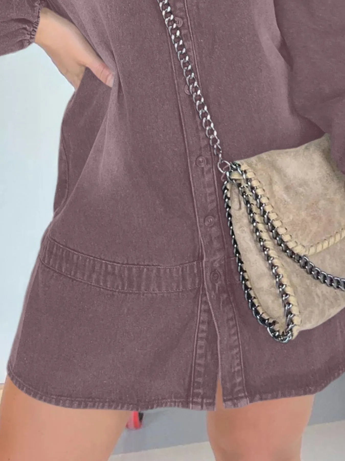 Full Size Button Front Long Sleeve Denim Dress Plus Size