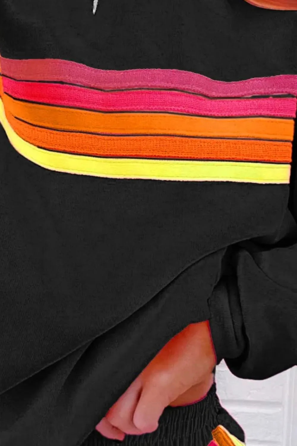 Full Size Contrast Striped Round Neck Top and Shorts Set