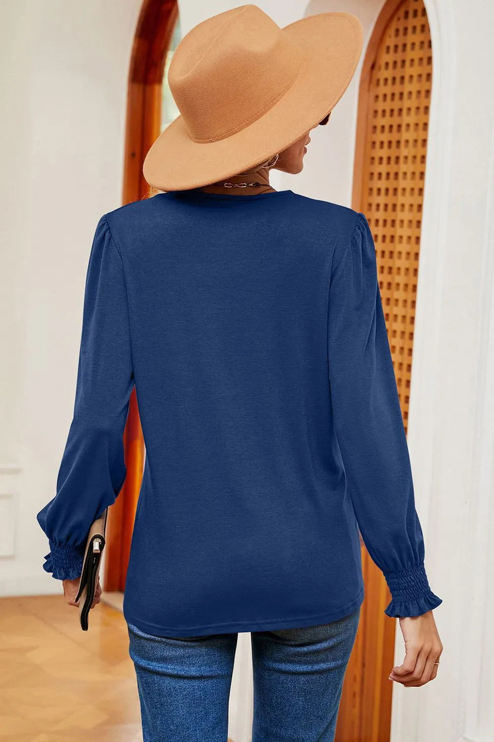 Lace Detail V-Neck Lantern Sleeve T-Shirt