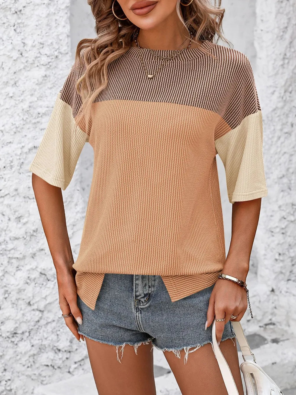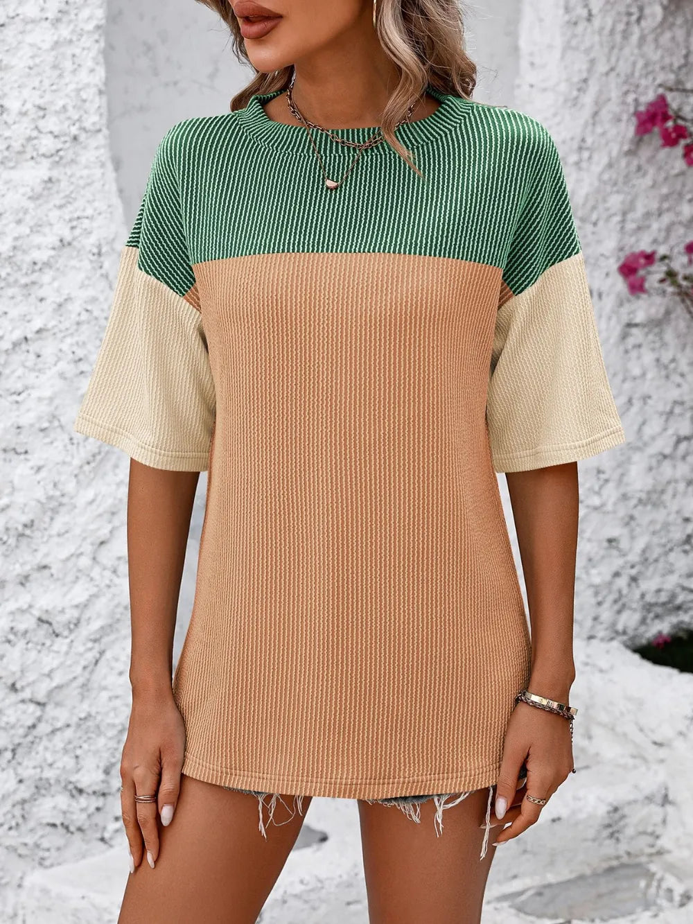 Mandy Color Block Round Neck Half Sleeve T-Shirt