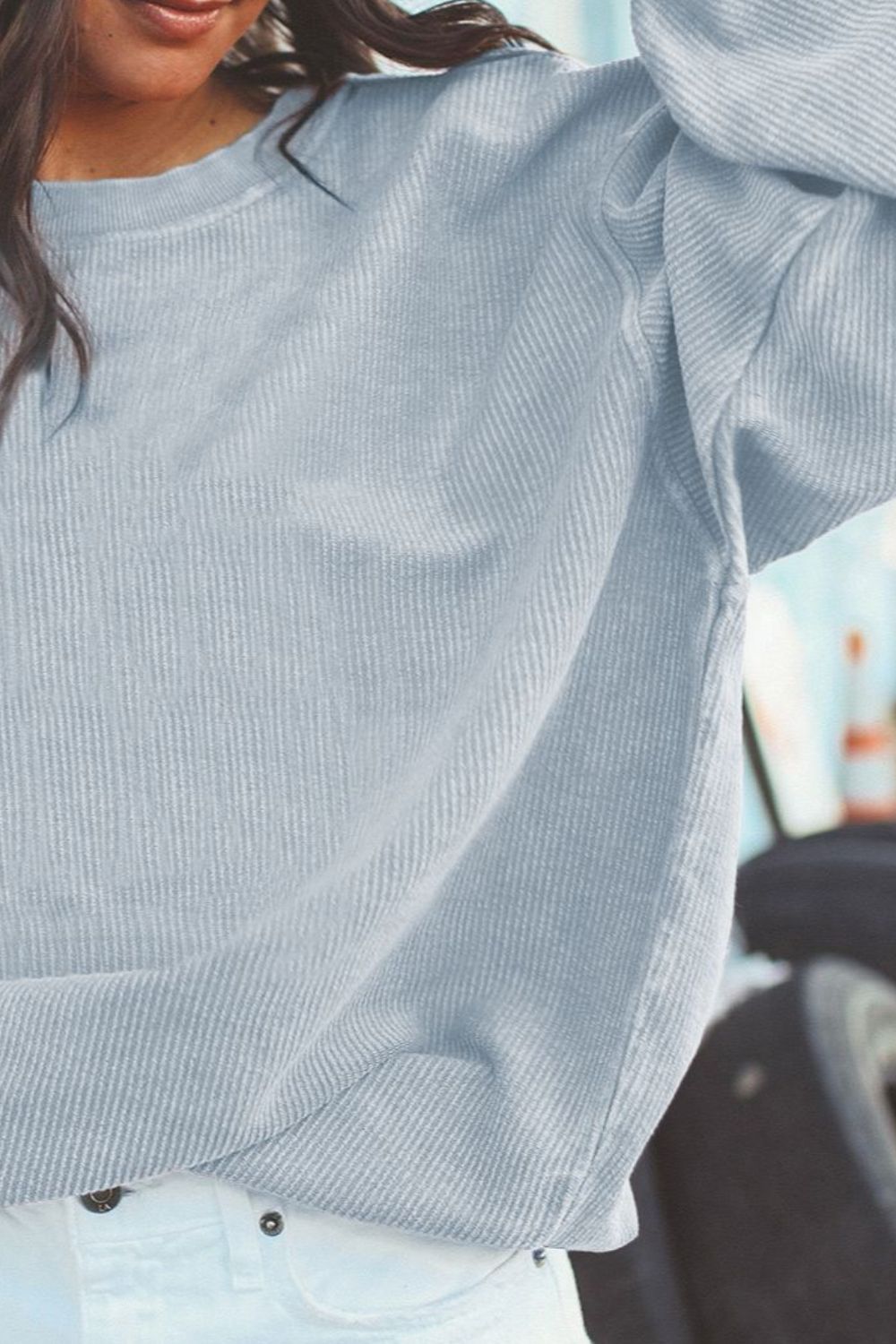 Ribbed Round Neck Drop Shoulder Sweatshirt