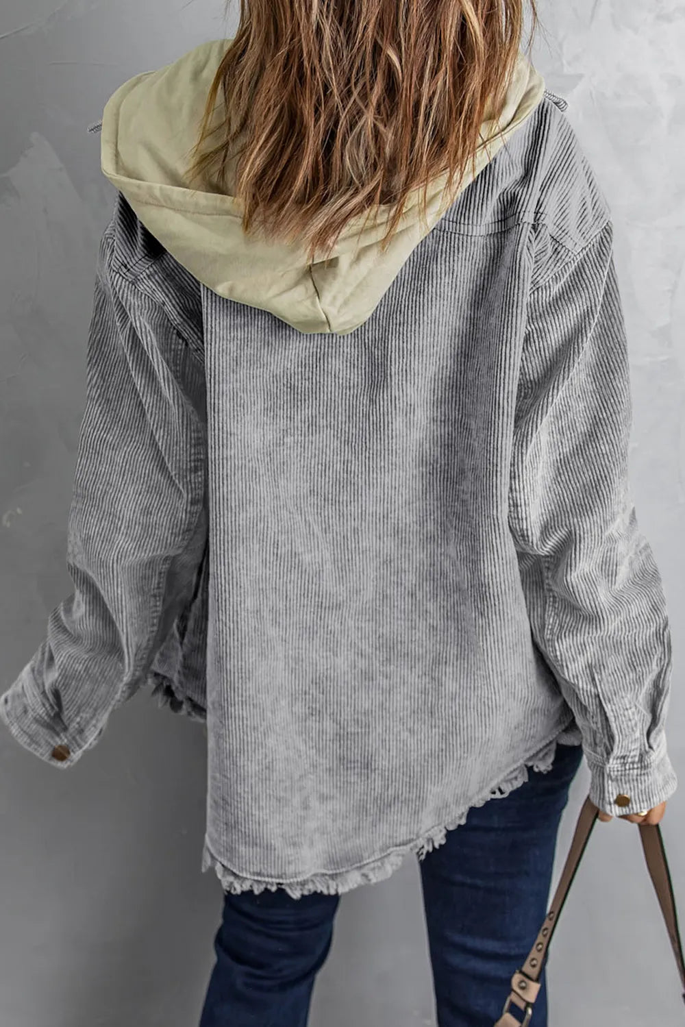 Add a relaxed vibe to your outfits with our Drawstring Pockets Corduroy Shacket. Featuring a hooded design and dropped shoulders, you'll love the casual look of this corduroy shirt.