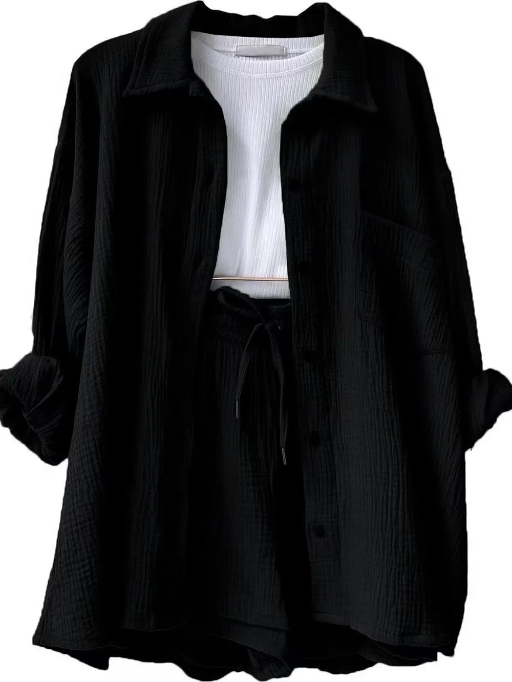 XL:Bust 47.24 in, Sleeve Length 21.65 in, Top Length 26.38 in, Waist 30.71 in, HIP 43.31 in, Bottom Length 14.57 in